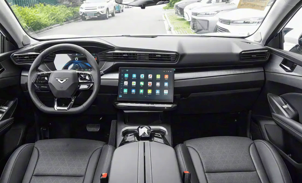 内饰部分迎来显著升级,全系车型均配备12.3英寸全液晶仪表盘与15.6英寸中控显示屏的组合,内置高通8155芯片,支持CarPlay、HUAWEI HiCar双平台手机互联以及智能语音交互功能。配置差异化方面,中配车型新增540°全景影像与前排手机无线充电模块,高配版本提供座椅加热/通风功能,顶配车型则搭载L2级驾驶辅助系统,涵盖自适应巡航、车道保持等核心功能。