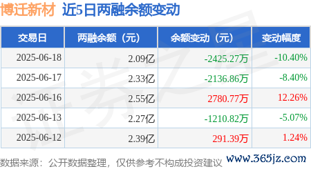 本站消息宇奇配资,6月18日,博迁新材(605376)融资买入1353.49万元,融资偿还3752.84万元,融资净卖出2399.35万元,融资余额2.08亿元。